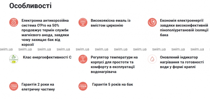 Виробник надає гарантію на бак бойлера із серії O'Pro Horizontal протягом 5 років, а на електронну частину – протягом 2-х років.