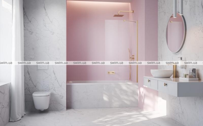 Матове золото фурнітури додає вишуканого, але стриманого акценту, перетворюючи ванну кімнату на простір із ноткою розкоші.