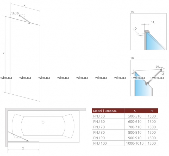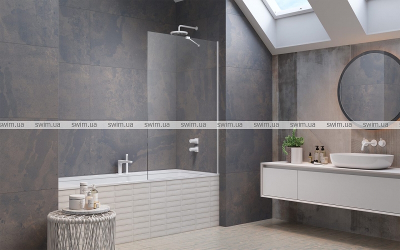 - Скло кріпиться до стіни за допомогою пристінних профілів (з регулюванням)