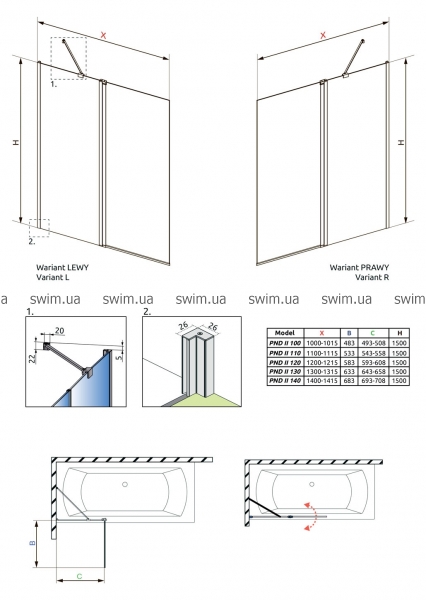 - Скло кріпиться до стіни за допомогою пристінних профілів (з регулюванням)