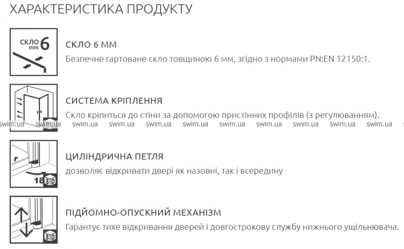 - Покриття скла EasyClean- pахисне покриття допомагає утримувати кабіну в чистоті. Завдяки водовідштовхувальним властивостям краплі води не утримуються на поверхні скла, а швидко стікають, не залишаючи сліду.