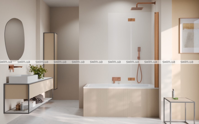 → Шторка на ванну Radaway Nes Brushed Copper PND I 1300Rх1500 прозоре