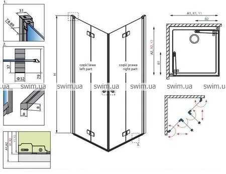 - Монтаж без піддону. Ця душова кабіна може бути встановлена як на піддоні, так і на підлозі.