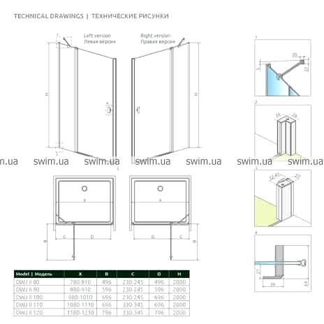 - Можливість монтажу без планки порогу. Покупець отримує всі необхідні комплектуючі для монтажу, як з планкою порога, так і без неї. Більш детальна інформація в інструкції по установці.