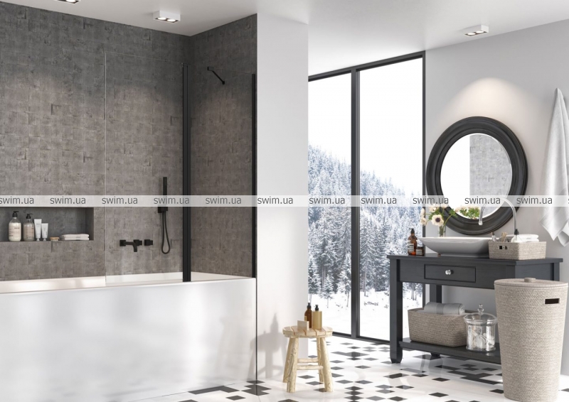 Шторка на ванну Radaway NES 8 Black PND II 1100Rx1500 прозоре