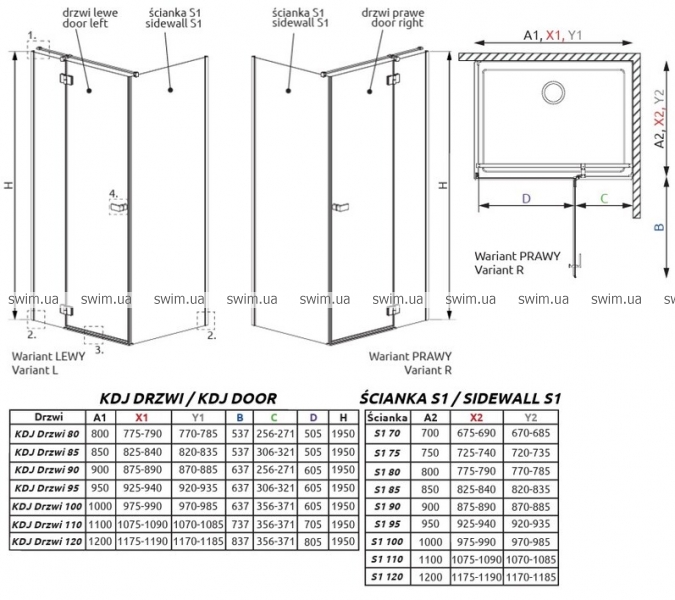 - Розмір: 900Rx1000x1950 мм