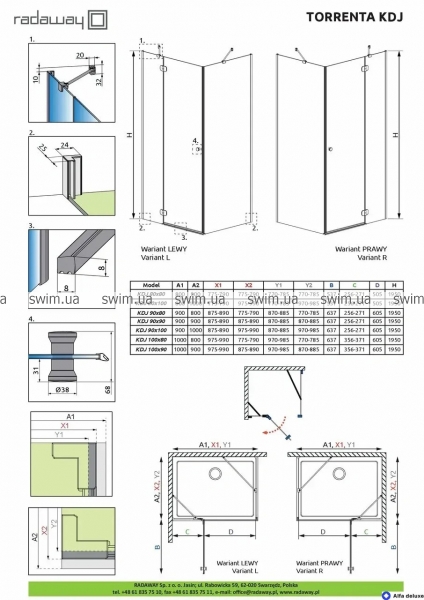→ Душова кабіна Radaway Torrenta Chrome KDJ 1000Lx800x1950 прозоре