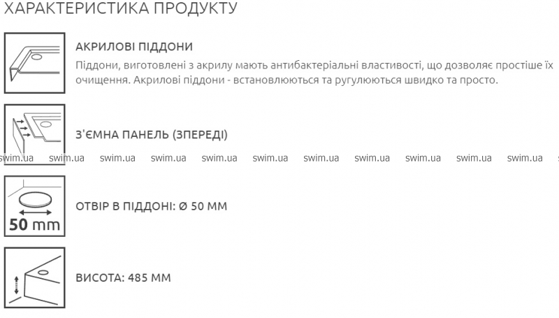 Піддони, виготовлені з акрилу мають антибактеріальні властивості, що дозволяє простіше їх очищення. Акрилові піддони - встановлюються та ругулюються швидко та просто.
