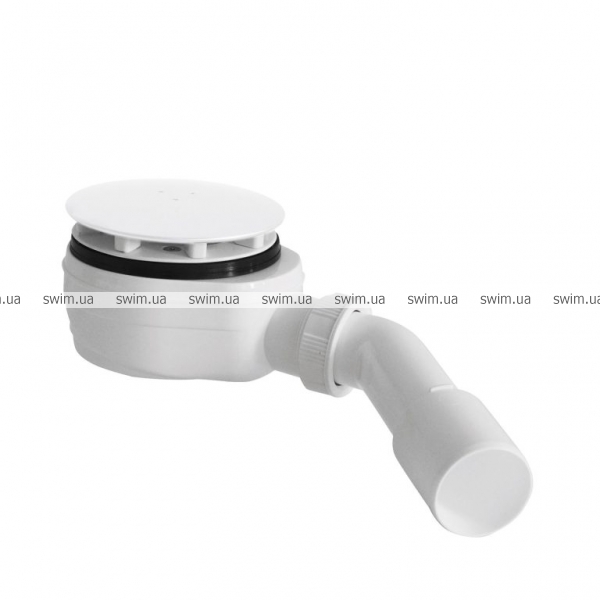 Сифони дуже важливий елемент інсталяції, завдяки яким використована вода після зливається до каналізаційної системи. Сифон для душових піддонів зі зливним отвором Ø 90 мм, має верхню ревізію очищення, з високою пропускною спроможністю 40,5 л/хв та зливним коліном 45°. Діаметр зливної труби Ø 40/50 мм. Висота 58 мм. Сифон має додаткове ситечко для фільтрування забруднень.