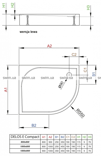 Душовий піддон Radaway Delos E Compact 1000Rx800х115 білий