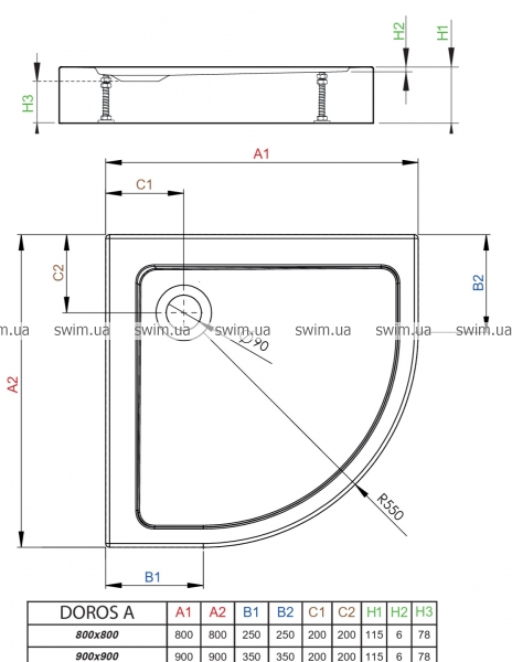Плаский, прямокутний акриловий піддон з цільнолитою панеллю (з 4 сторін). Призначений для монтажу на ніжках (в комплекті). Отвір під сифон Ø90мм по середині довгої сторони. Рекомендовані сифони: R500, R 580, R510, R400 SLIM, R400W Slim.