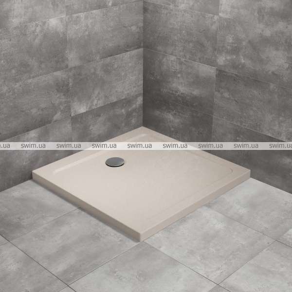 Квадратний акриловий душовий піддон призначений для встановлення безпосередньо на підлозі, з отвором під сифон діаметром 90мм.