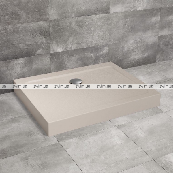 Плаский, прямокутний акриловий піддон з цільнолитою панеллю (з 4 сторін). Призначений для монтажу на ніжках (в комплекті). Отвір під сифон Ø90мм по середині довгої сторони. Рекомендовані сифони: R500, R 580, R510, R400 SLIM, R400W Slim.