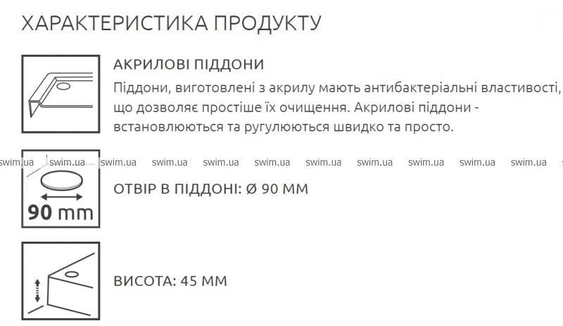 - Отвір в піддоні: Ø90 мм