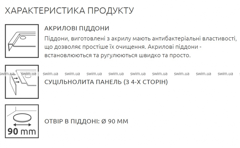 - Отвір в піддоні: Ø90 мм