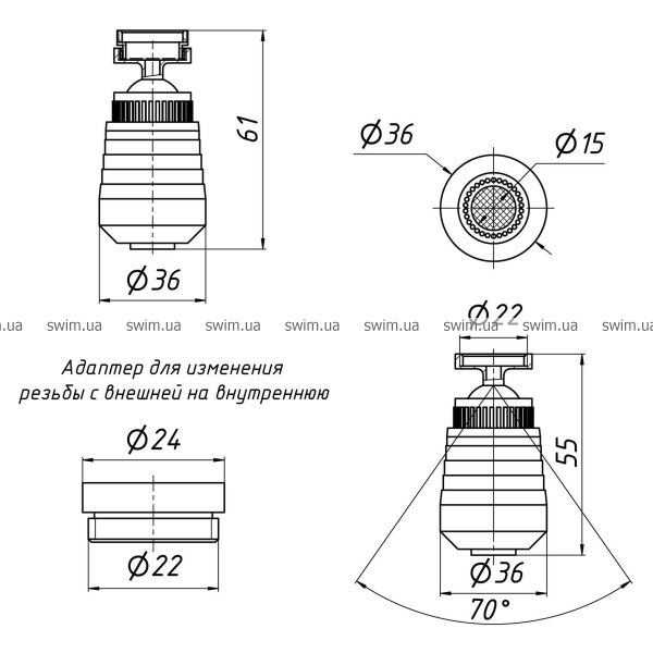 Аэратор Lidz CRM 48 00 024 10 с адаптором