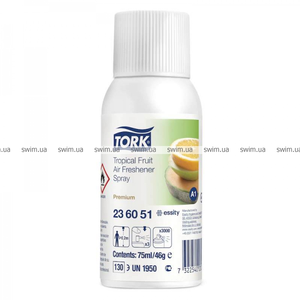 Ефективно та успішно контролюйте запах у туалетній кімнаті з цитрусовим аерозольним освіжувачем повітря Tork. Аерозоль містить концентровані ароматичні олії та запатентовані нейтралізуючі запах речовини, які усувають неприємні запахи та довго підтримують у приміщенні свіжість. Підходить для використання в диспенсер Tork для аерозольного освіжувача повітря.