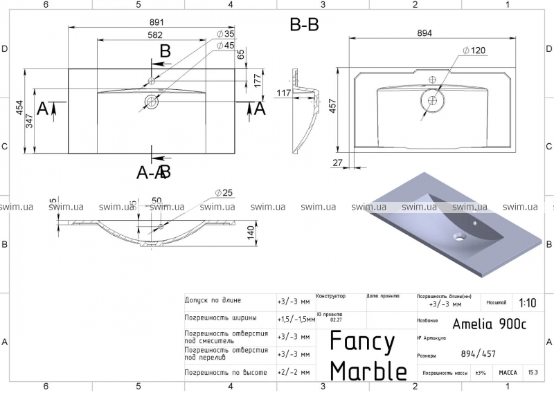 Умивальник Fancy Marble Amelia 900С 0709101