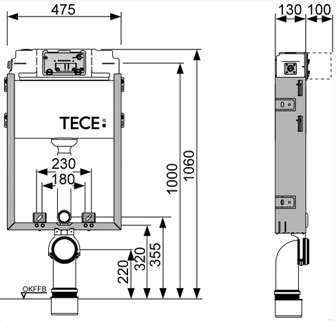 Застенный модуль TECEbox для установки подвесного унитаза, фронтальное расположение панели смыва