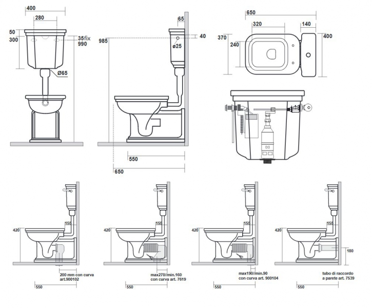 - Бачок средний для механизма с боковой ручкой для унитаза 4116