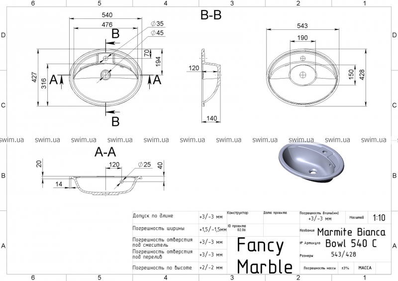 Умивальник Fancy Marble Bianca Bowl 540 2105103