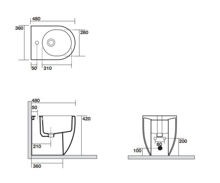- Размер биде (ВхШхГ): 420х360х480 мм