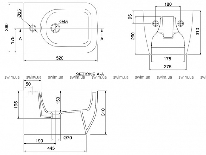 Біде підвісне Scarabeo Teorema 2.0 (512749) Ardesia