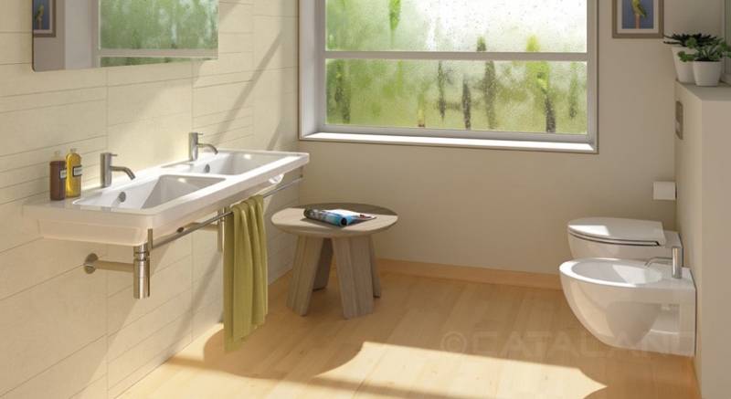 Семья Ньюлайт совмещает спокойный стиль с большой гибкостью инсталляций. Раковины 100, 80 и 62 предназначены на одно и на три отверстия, могут иметь подвесную или полу встроенную установку. Раковина 80 может устанавливаться вместе со специальной мебелью из двух ящиков, имеющихся в различных отделках. Коллекция комплектуется двумя копиями подвесных или напольных унитазов и биде.