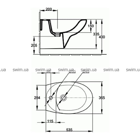 - С отверстием перелива