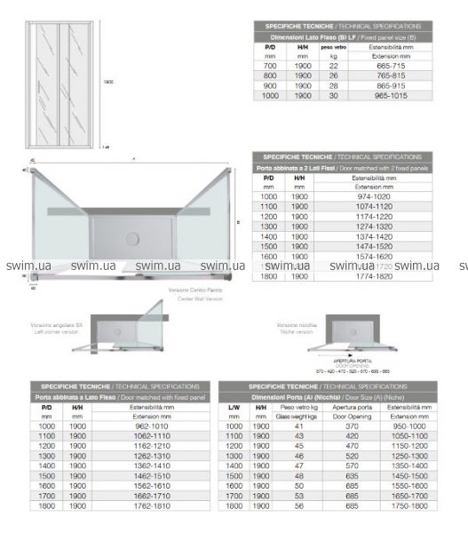 Для создания душевого уголка неподвижная боковая стенка комплектуется душевой дверью Kerasan PSC50: арт.705101, арт. 705102, арт.705103, арт.705104, арт.705105, арт.705106, арт.705107, арт.705108, арт.705109