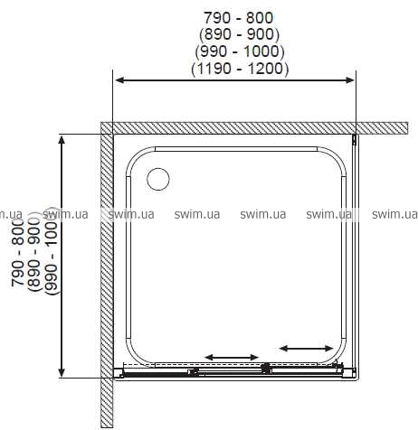 Раздвижные двери Treviso можно использовать как двери в нишу монтируя между двумя стенами или как прямоугольную кабину монтируя двери с одной или двумя боковыми стенками.