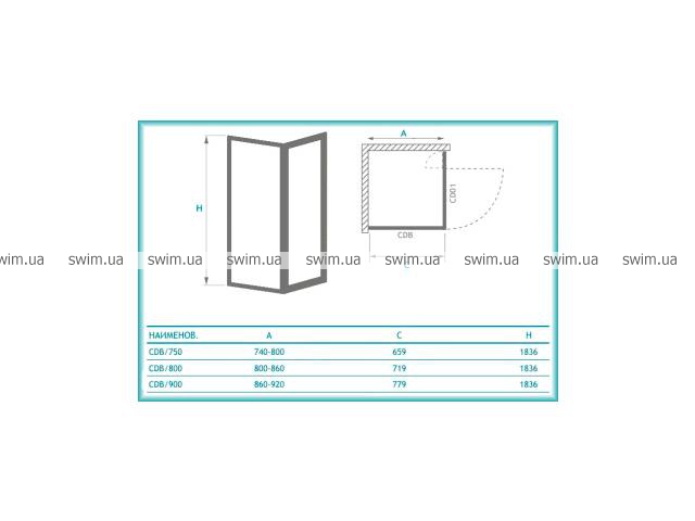 • Душевая дверь в комплекте с душевыми шторами CDO1 или CDO2 и делает возможным комплектовать душевой уголок с удобным для вас выходом и открыванием двери
