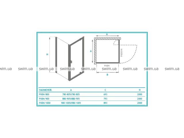 - Размер: 980-1005х980-1005х2000 мм
