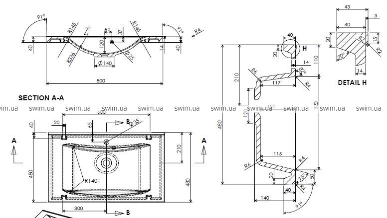 - Матеріал раковини: штучний камінь