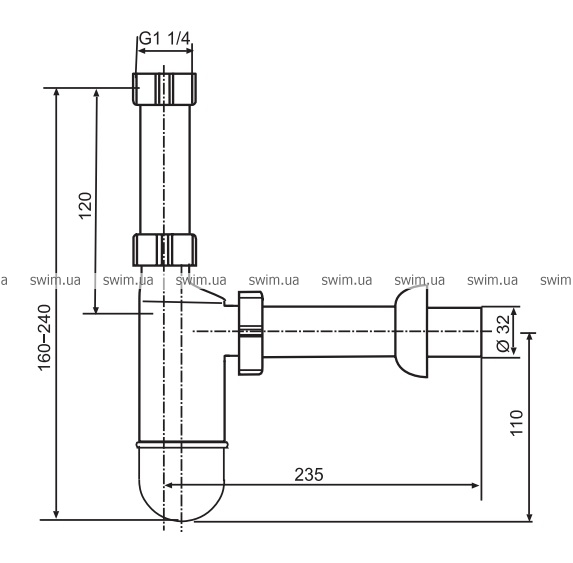 Бутылочный сифон для раковины Sanit 31.004.00..0000