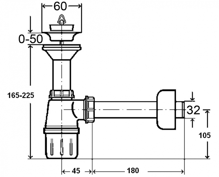 - Компактный монтаж, потому что сливной отвод прикручивается к сливу напрямую без регулировочной трубы
