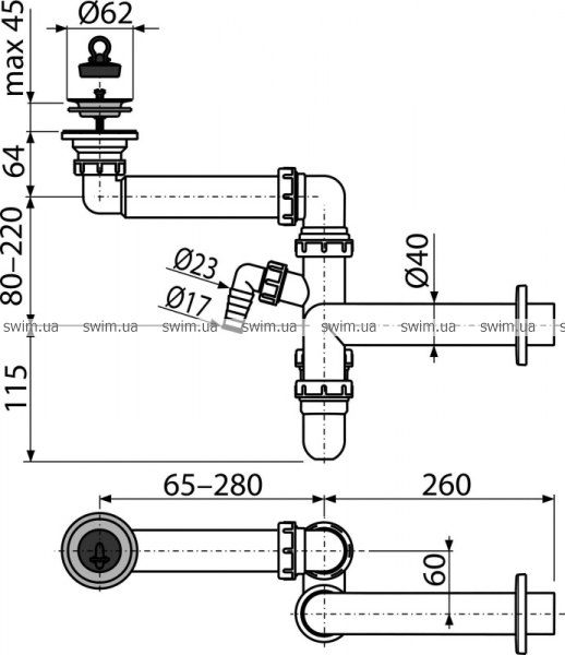 ГоловнаСифониAlcaplast → Cифон для умивальника Alca A413P-DN40 з економією простору DN63