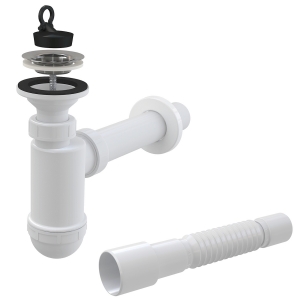 Cифон для умивальника DN40 Alca A41+A795 з гнучким з'єднанням