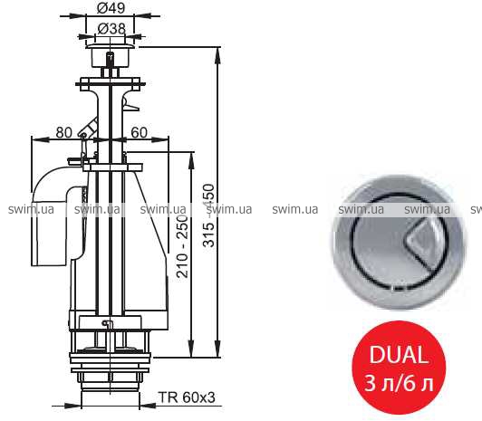 Весь производственный ряд сливных механизмов, как по установочным размерам, так и по объему слива, можно приспособить установленному бачку. Все сливные механизмы работают в экономичном режиме с помощью системы STOP или DUAL т.е. с половинным или полным объемом слива. Кнопки управления глянцевые хромированные или белые. Конструкция механизмов позволяет закрепить крышку к бачку. В случае применения в бачке с отверстием в крышке менее 42 мм можно использовать колпачок, позволяющий применять механизмы и для маленьких отверстий в крышке. У сливных механизмов для пластмассовых бачков можно регулировать объем слива, их можно универсально использовать в бачках различных производителей с выпускным отверстием 60 мм. Конструкция механизмов позволяет регулировать высоту механизма в зависимости от высоты бачка.