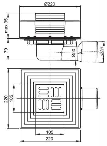 - размер: 105×105/50/75 мм