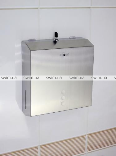 Диспенсер настенный для бумажных полотенец . Применять диспенсер можно совместно с любой бумагой, любой ширины и любого типа сложения. Диспенсер имеет универсальный ключ, который подходит к держателю для рулонной туалетной бумаги.