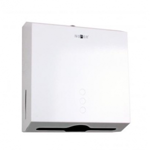 Диспенсер настенный для бумажных полотенец . Применять диспенсер можно совместно с любой бумагой, любой ширины и любого типа сложения. Диспенсер имеет универсальный ключ, который подходит к держателю для рулонной туалетной бумаги.