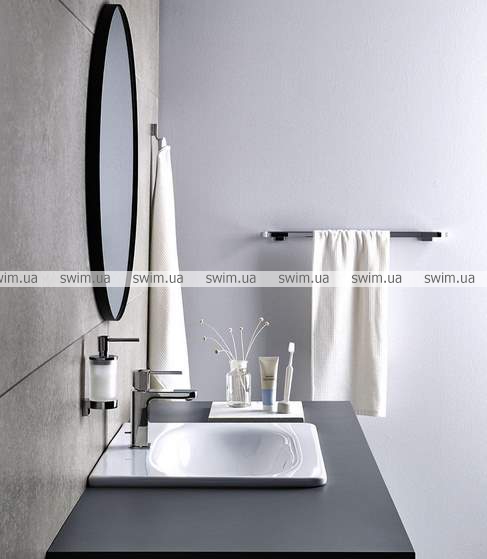 Закажите стакан (41029000), дозатор мыла, мыльницу (41028000), набор туалетных щеток и различные полотенцесушители в комплекте.