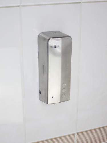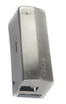 Дозатор для жидкого мыла автоматический Nofer 03039.S сенсорный из нержавеющей стали AISI 304, имеет все нужные сертификаты соответствия европейским стандартам (СЕ), а также российским требованиям (ЕАС). Как и все продукты Nofer сенсорные диспенсеры для мыла производятся в Барселоне. Данный агрегат работает от 4 батареек АА, не беспокойтесь из-за того, что вам придется менять их очень часто, ведь одного комплекта аккумуляторов вам хватит на 200 000 циклов использования дозатора. Также данный дозатор может работать от электрической сети, для этого потребуется докупить электрический адаптер. Дозатор будет выделять 0,5 мл жидкого мыла за 1 цикл работы. Корпус дозатора считается антивандальным, поскольку изготовлен из нержавеющей стали толщиной 1,0 мм и не имеет острых углов. Также устройство поставляется в комплекте с универсальным ключом и монтажным набором, батарейки с дозатором не поставляются. Диспенсер прочный ба из нержавеющей стали и может быть использован с любым видом жидкого мыла или моющим средством. Рекомендуется использование расходных материалов средней вязкости, уровень РН которых находится в диапазоне от 5 до 350. Также данный диспенсер можно использовать совместно с мылом-пеной. Для этого потребуется докупить спеиальный клапан.