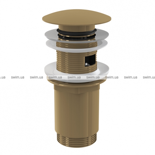 A392-GM-B ДОННИЙ КЛАПАН ДЛЯ УМИВАЛЬНИКА CLICK/CLACK 5/4", ЦІЛЬНОМЕТАЛІЧНИЙ З ПЕРЕЛИВОМ І ВЕЛИКОЮ ЗАГЛУШКОЮ – GOLD-шліфований мат