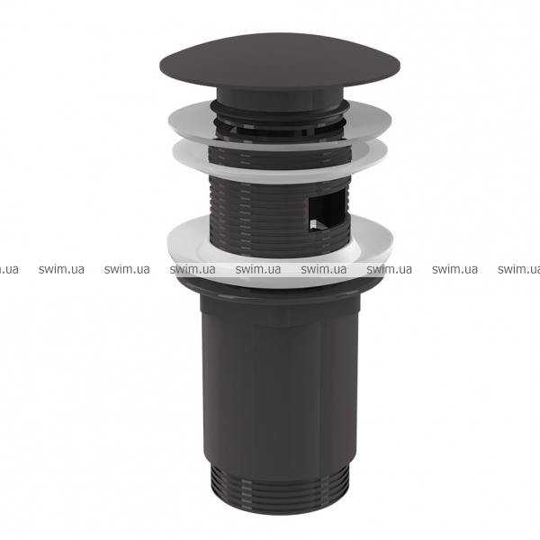 A392-GM-B ДОННИЙ КЛАПАН ДЛЯ УМИВАЛЬНИКА CLICK/CLACK 5/4", ЦІЛЬНОМЕТАЛІЧНИЙ З ПЕРЕЛИВОМ І ВЕЛИКОЮ ЗАГЛУШКОЮ – GUN METAL-шліфований мат