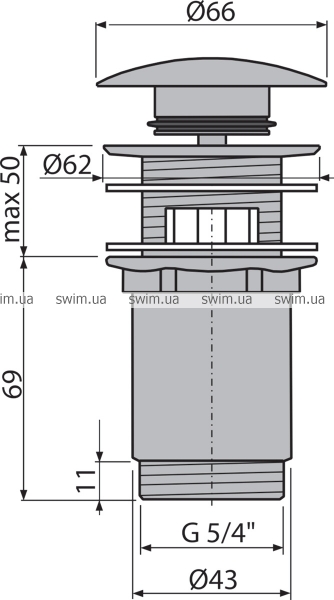 A392-RG-B ДОННИЙ КЛАПАН ДЛЯ УМИВАЛЬНИКА CLICK/CLACK 5/4", ЦІЛЬНОМЕТАЛІЧНИЙ З ПЕРЕЛИВОМ І ВЕЛИКОЮ ЗАГЛУШКОЮ – RED GOLD-шліфований мат