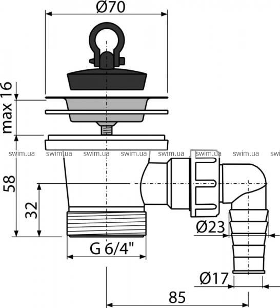 Донний клапан сифона для мийки 6/4" Alca A33P
