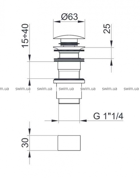 - Со съемным канализационным клапаном толщиной от 15 до 40 мм