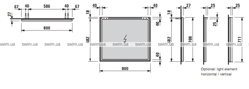 - Дополнительная горизонтальная подсветка 1x12 Вт, 4000 Кельвин (дневной свет), IP44, 230V